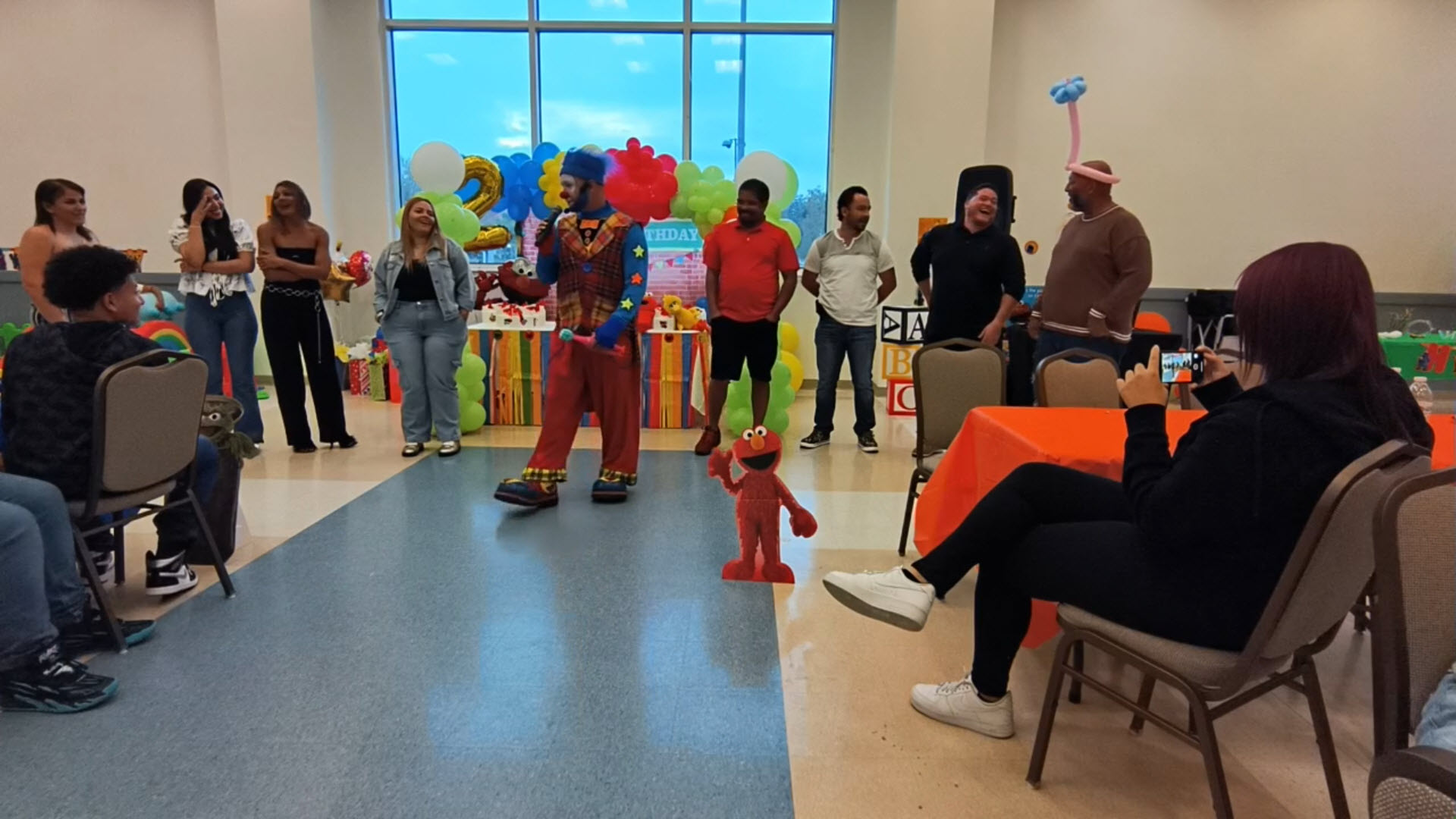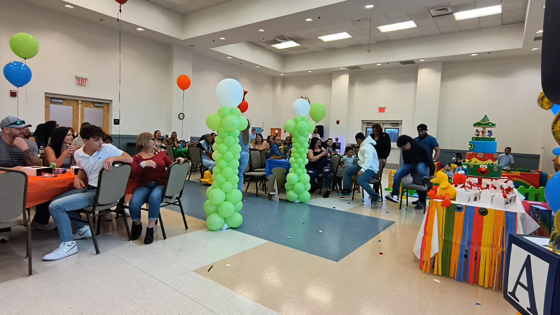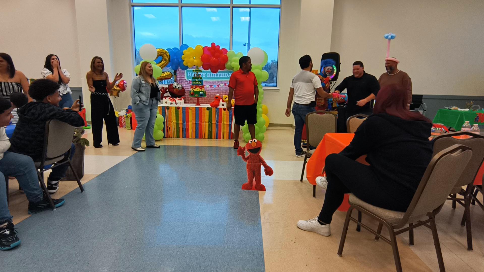 El tema de Plaza Sésamo llenaba el aire, con colores y figuras que parecían sacadas de un sueño infantil. Cuando yo llegué, los personajes en vivo de Plaza Sésamo estaban saliendo de la fiesta ya que también fueron parte de la celebración.