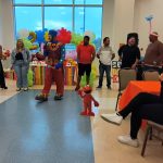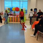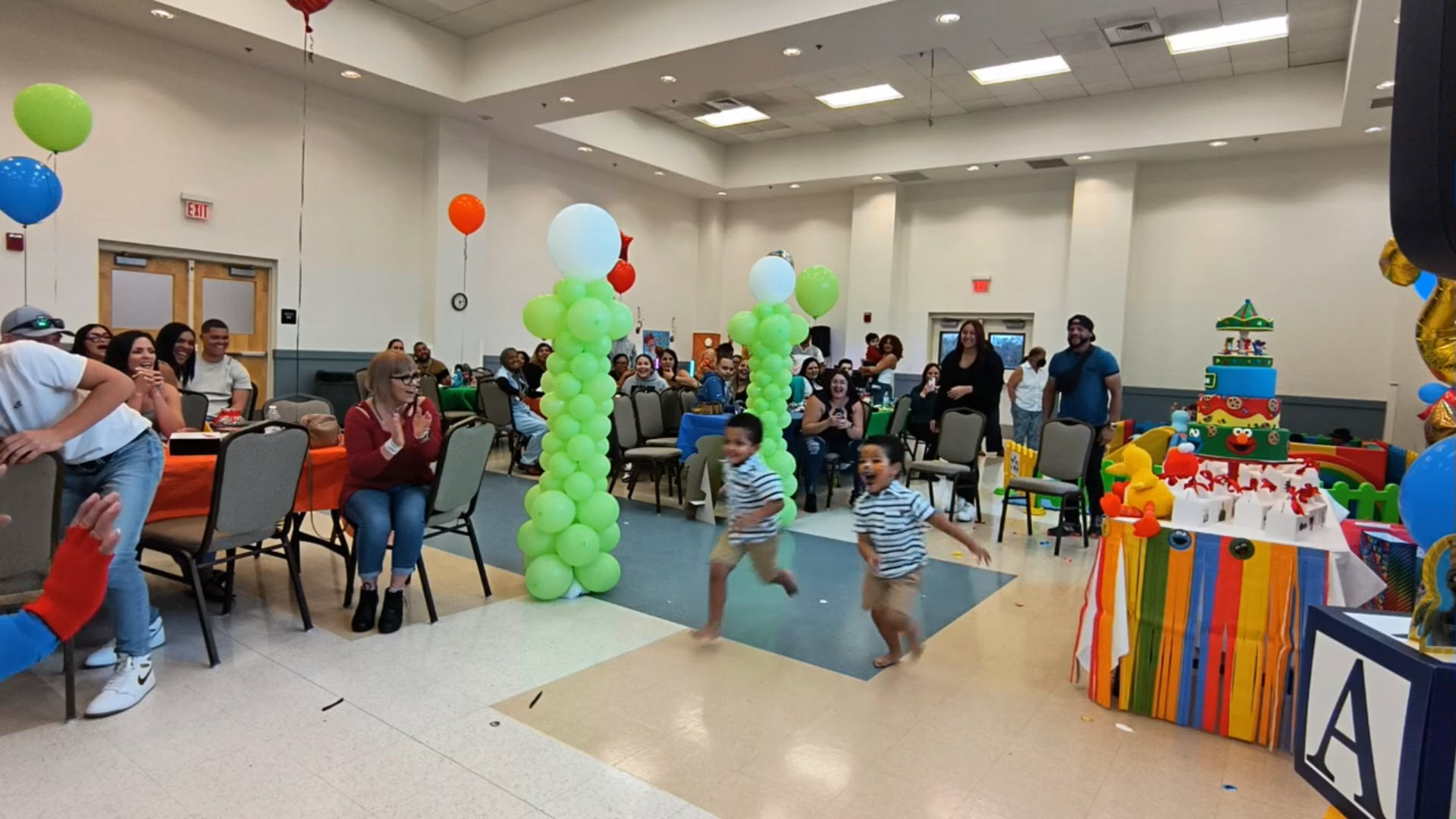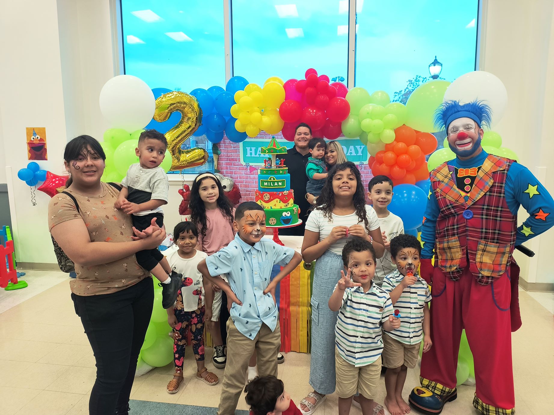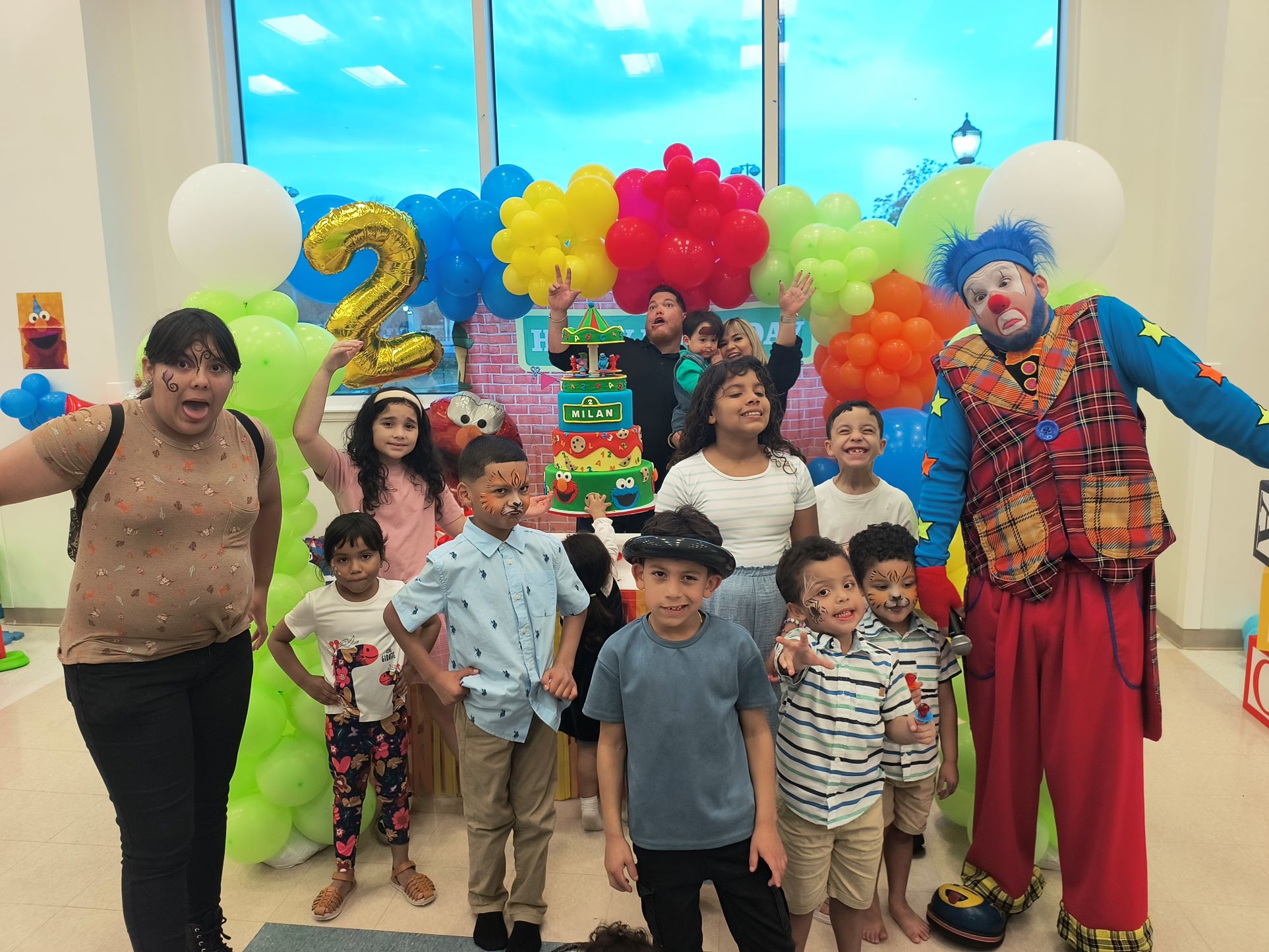 El tema de Plaza Sésamo llenaba el aire, con colores y figuras que parecían sacadas de un sueño infantil. Cuando yo llegué, los personajes en vivo de Plaza Sésamo estaban saliendo de la fiesta ya que también fueron parte de la celebración.