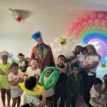 Uno de los momentos que más me hizo reír fue cuando estaba enseñándole a los niños y niñas a decir mi nombre, Payaso Pikorete. Le pregunté a un amiguito cómo yo me llamaba, y él, sin dudar, me dijo: “My name is Liam”. Esto causó muchas risas. Me parece que este niño tiene el potencial de convertirse en tremendo payaso en el futuro.
