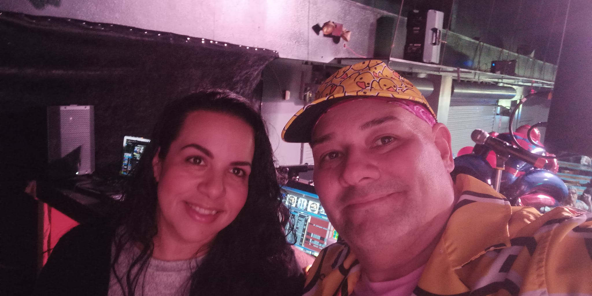 Nos tiramos un selfie con el público de fondo y la casa estaba llena de mucha gente de todas partes de Florida, Puerto Rico y el Mundo.