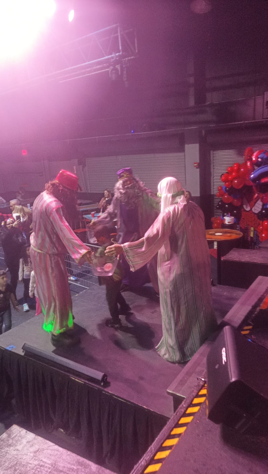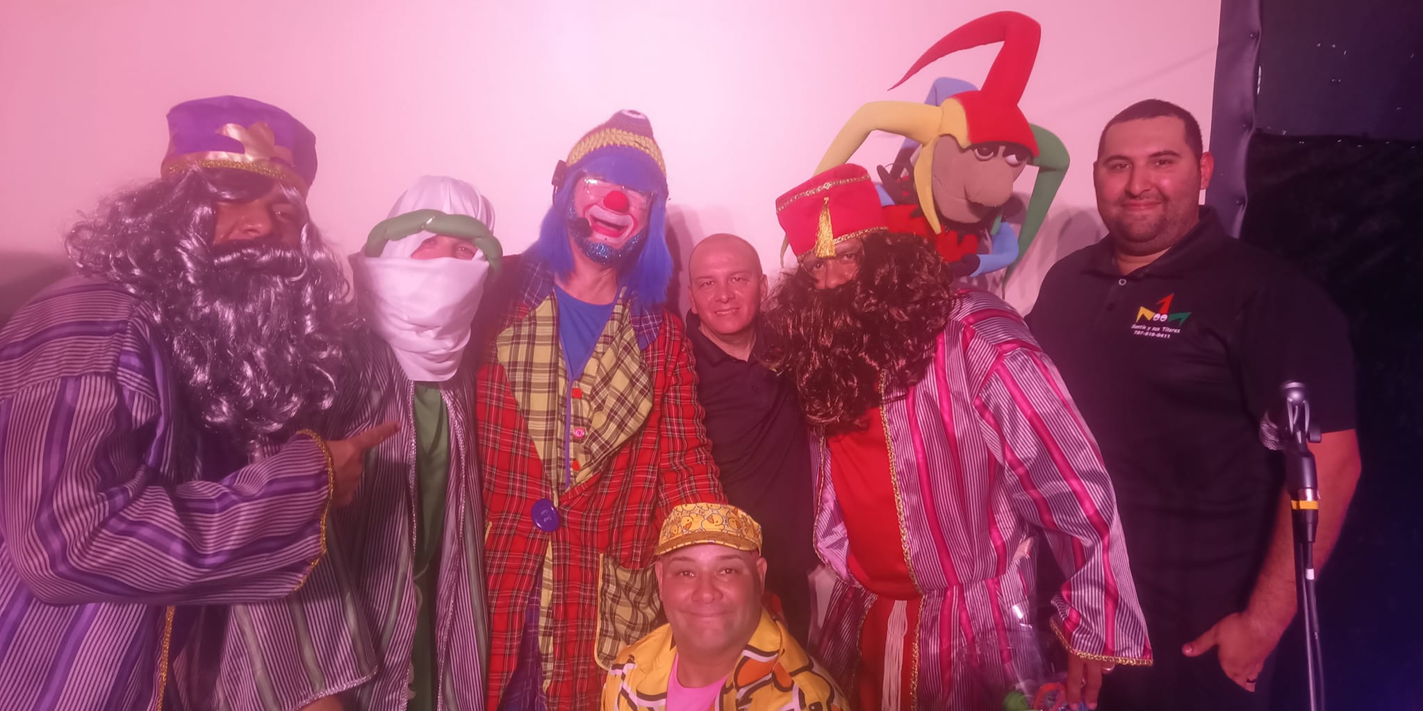 Los tres reyes magos aparecieron y se pusieron a bailar para el deleite de los niños y todas las personas presentes.